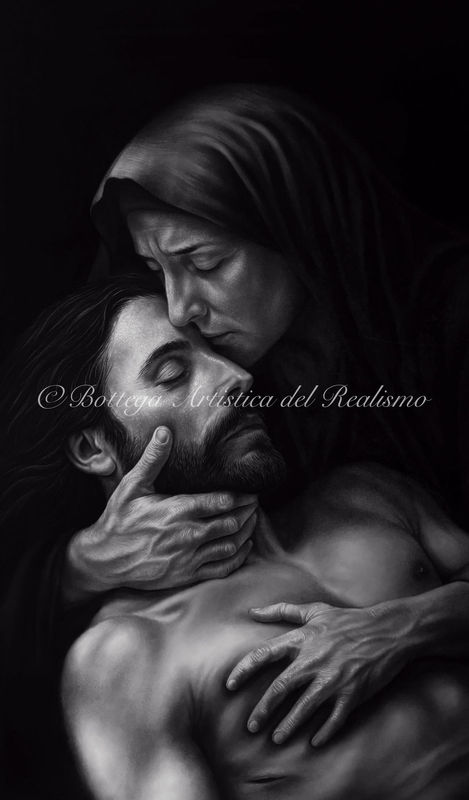 Francesca Attard's greyscale pencil drawings use realism and chiaroscuro to explore depth and atmosphere. By emphasizing light and texture, her religious and sacred art captures intense moments. The different shades highlight the emotional intensity of her subjects, inviting viewers into a contemplative and spiritual experience.
